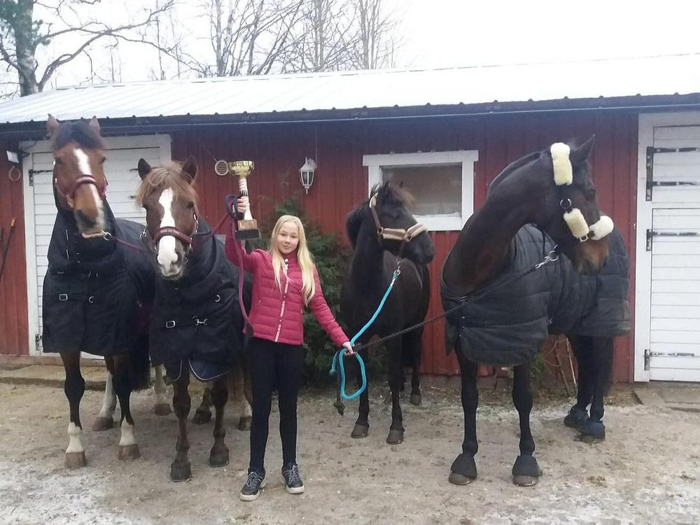 Helena Ala-Äijälän omistama Ludwig Wäst nuorten aluehallikoulumestaruuskultaa ja suomenpienhevosten Suomenmestaruus pronssi